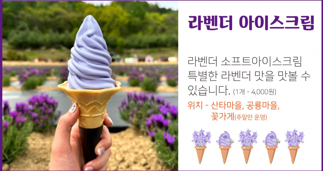 - 오전: 라벤더 정원 산책 → 허브차 시음 체험